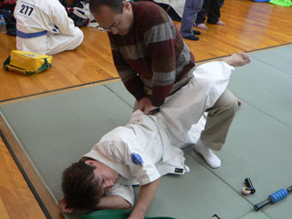 したがって、フルコンタクト空手の試合前の選手へのアプローチ(施術)は、まず、何を目的とした施術か!という事を、選手にしっかりと意識させ、そして、股関節にポイントを置いて選手の施術に当たっています。